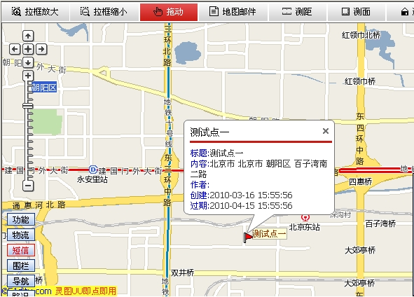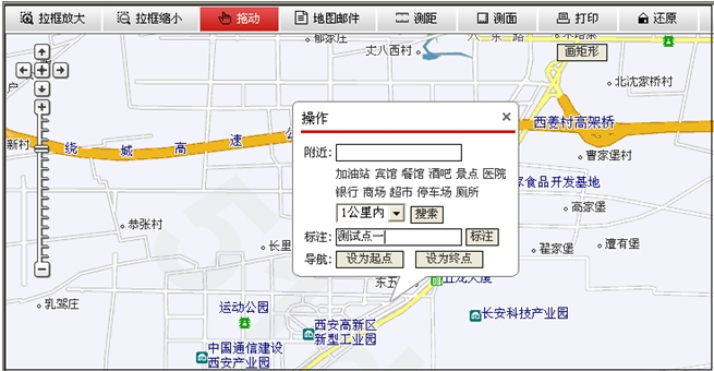 (1)在地图中的需要添加标注的点上鼠标右击 ,弹出操作框,在标注栏填写标注名称(如:测试点一),点击