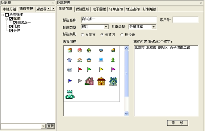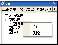 在客户端左侧:功能窗—>物流管理,标注名称上点击右键,即可修改和删除标注。