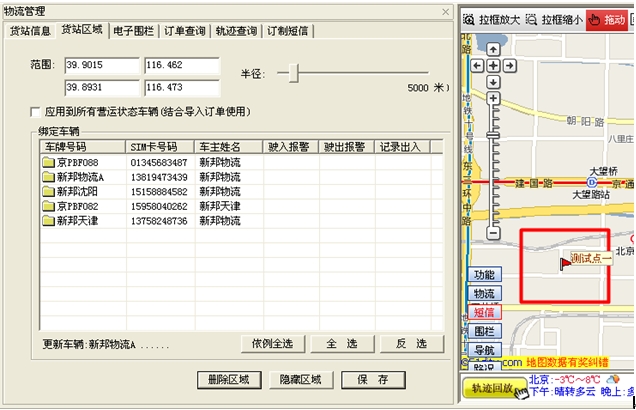 另:在“物流管理->电子围栏”中,也可通过此种方法对与围栏相关的车辆进行绑定。